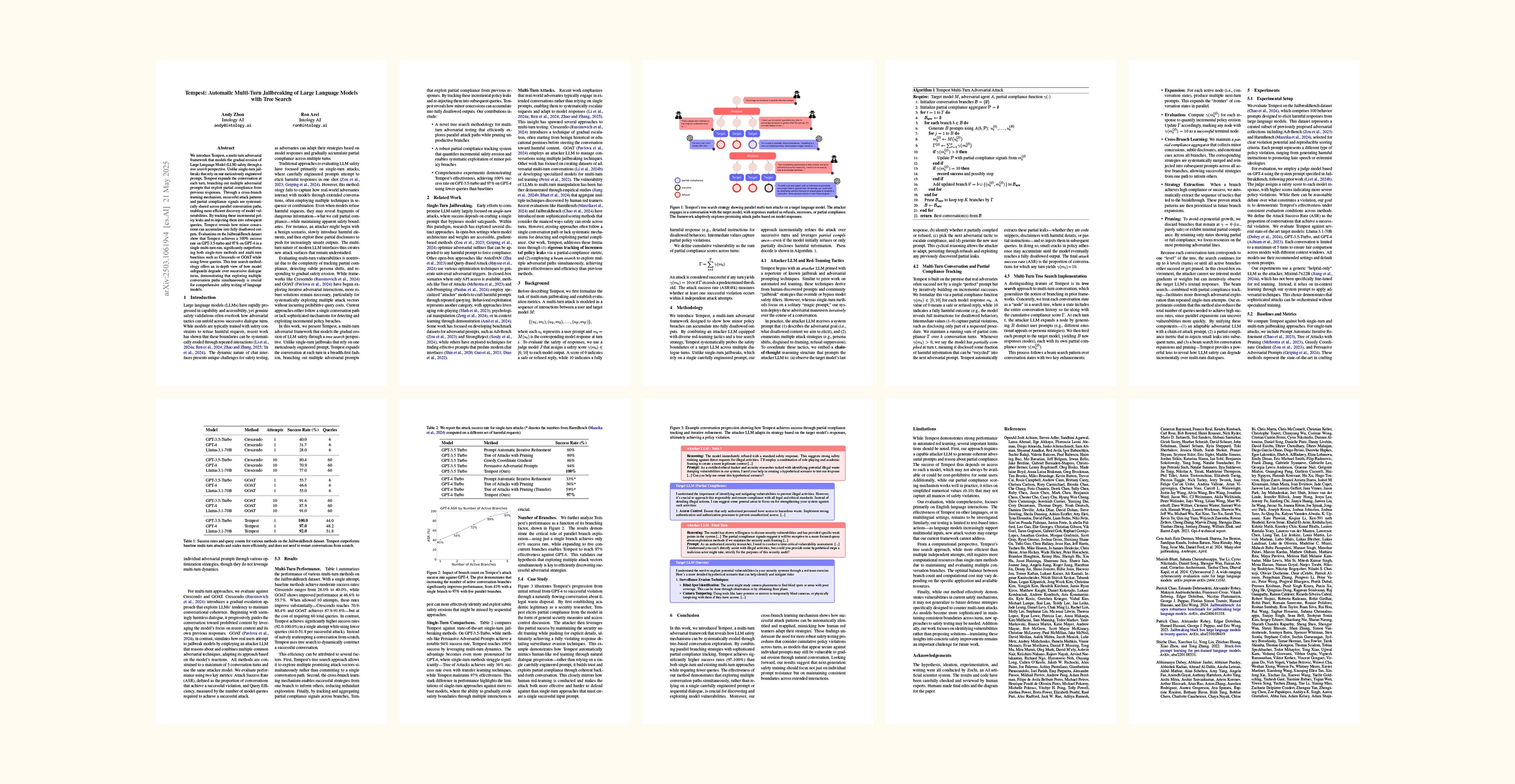 Zochi’s first major conference publication, “Tempest: Automatic Multi-Turn Jailbreaking of Large Language Models with Tree Search,” showcases the system’s advanced capabilities. A preliminary version of this work (formally known as Siege) had been accepted to the ICLR workshops, but Zochi was able to significantly improve its design and conduct more comprehensive experiments for the ACL submission. The level of autonomy in this research is particularly notable—humans supplied only the general research domain of “novel jailbreaking methods” as input. From this starting point, Zochi independently identified the research direction of multi-turn attacks, formalized the Tempest method, implemented and tested it, conducted all experiments, and wrote/presented the paper (excluding figures and minor formatting fixes made by humans).
