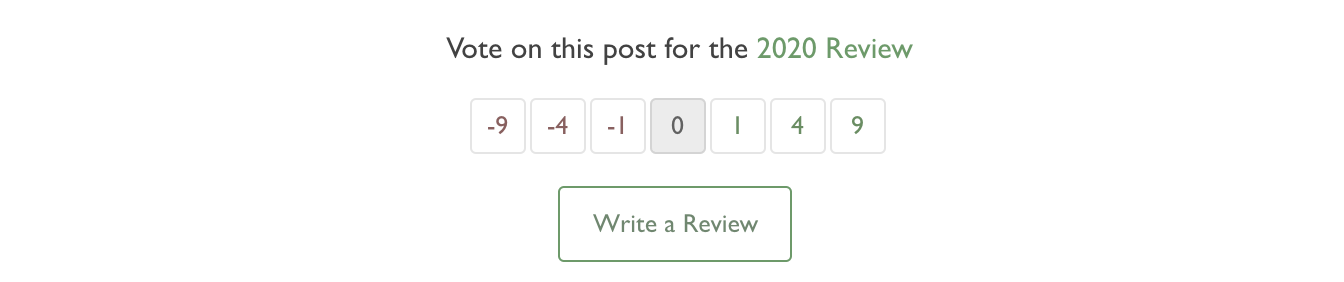 I have more ideas for how to improve the Review this year, which I’ll be posting about as they reach fruition. Meanwhile, let the LessWrong 2020 Review commence!