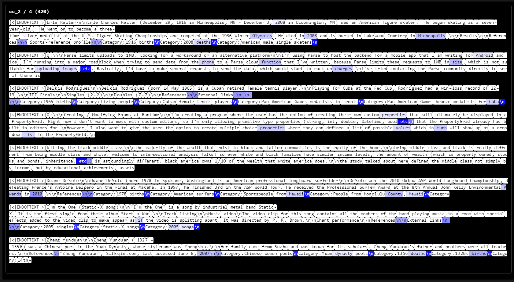 cc_2 / 4 \n tokens in lists of (wikipedia?) categories; also “etc” token