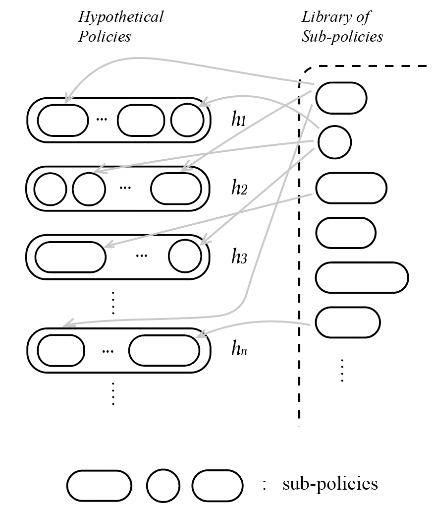 In summary, each ACI agent implements multiple hypothetical policies, each policy consists of multiple sub-policies. For efficiency, sub-policies of different policies can be selected from a library of sub-policies.