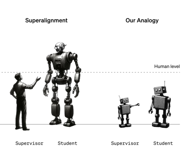I use the term “weak to strong generalization” to talk about a more specific research-area-slash-phenomenon within scalable oversight (which I define like SO-2,3,4). As a research area, it usually means studying how a stronger student AI learns what a weaker teacher is “trying” to demonstrate, usually just with slight twists on supervised learning, and when that works well, that’s the phenomenon.