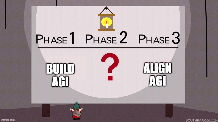 They do talk later about aligning this first AGI. This does not solve the hard problem of how a dumber thing can align a smarter thing. The plan is to do this in small steps so it isn’t too much smarter at each step, and do it at the speed of AI. Those steps help, and certainly help iterate and experiment. They don’t solve the hard problems.