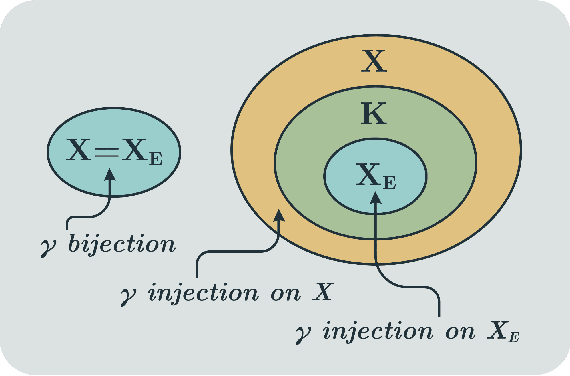 In this post, we concluded γ:XE→XC injection. In cardinality terms, |XE|≤|XC|.