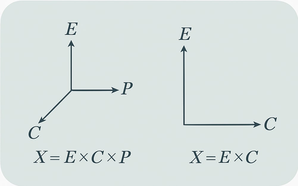 We could consider, for example, X=E×C×P (left) or X=E×C (right)
