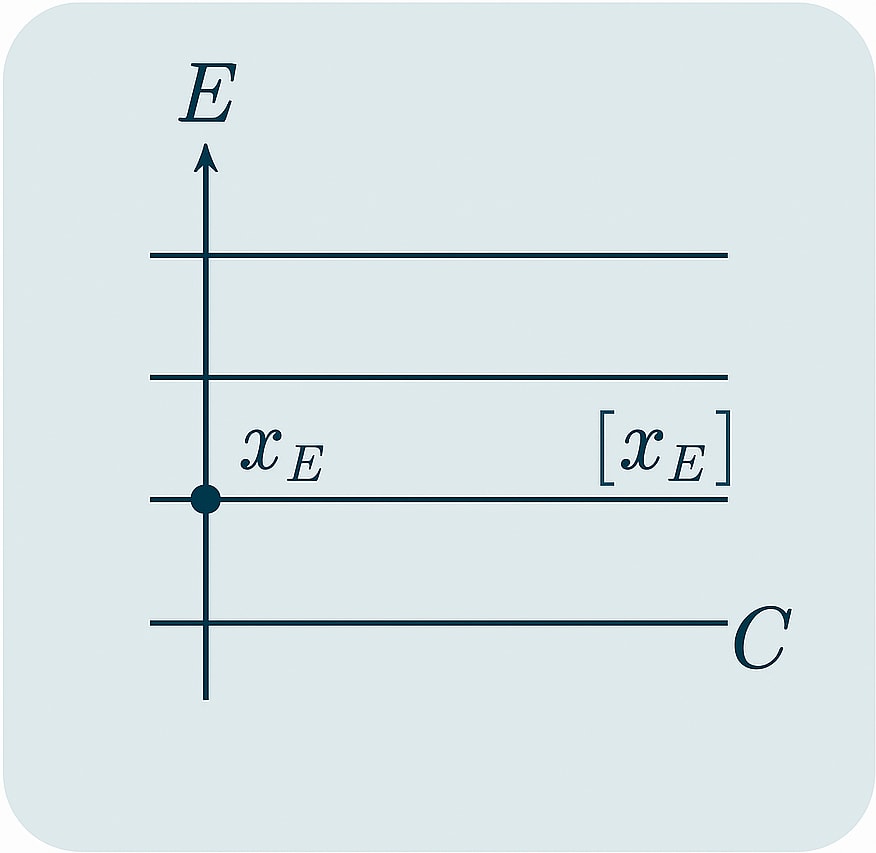 Each xE point determines a line [xE]={(c,e)∈X;πE(c,e)=xE}. Then, we can define π−1E(xE)=[xE]