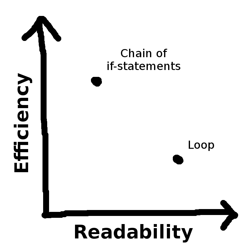 See, there are a whole bunch of ways to write the code that are neither as efficient nor as readable as one of the filled-in circles on the perimeter. But I would never choose any of those ways, for obvious reasons. And if a new solution occurs to me that beats out some of my old solutions along both metrics...