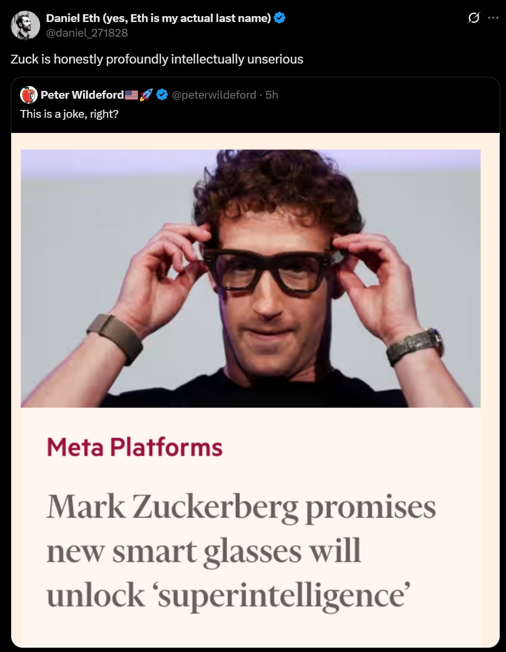 17. Glass Houses. Meta shills potentially cool smart glasses as ‘superintelligence.’