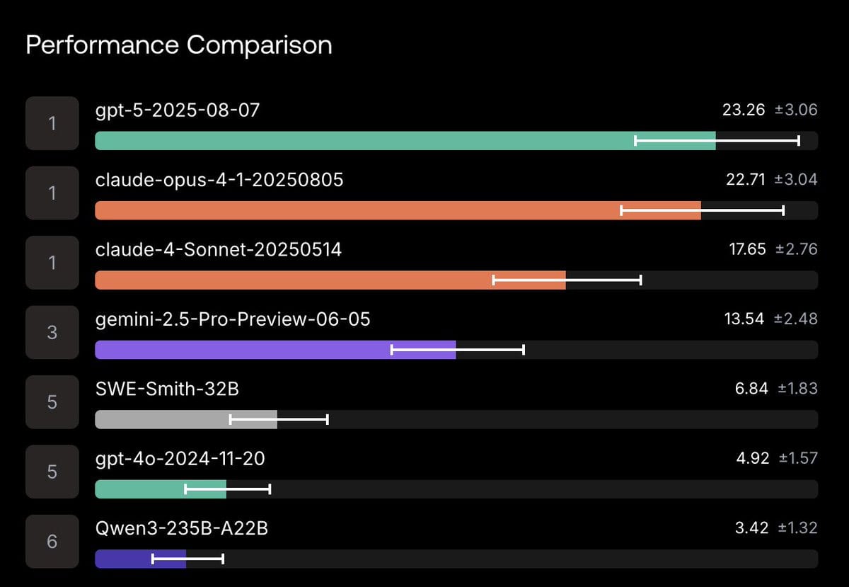 * More challenging – top models score around 23% on SWE-Bench-PRO compared to 70% on the prior SWE-Bench
