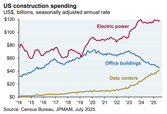 According to GPT-5 Pro, electrical power capacity construction is only a small fraction of data center construction costs, so the jump in electrical spending here could in theory be more than enough to handle the data centers. The issue is whether we will be permitted to actually build the power.