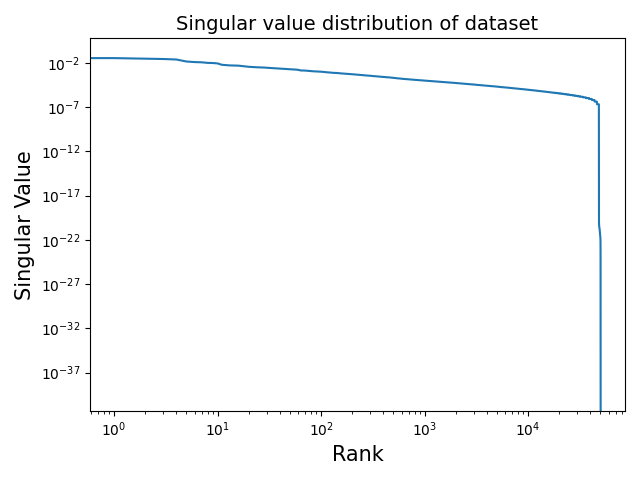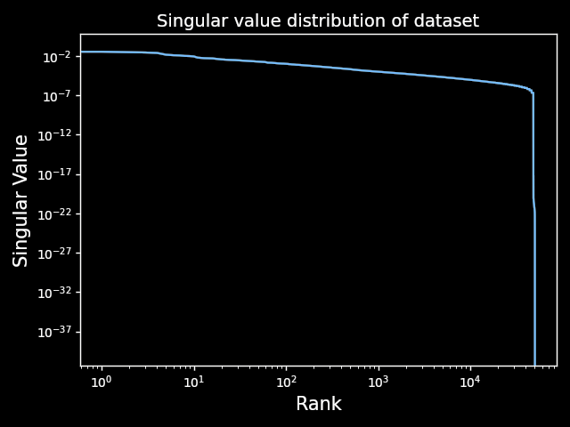 Finally, the rapid fall-off in the singular values implies that the weight matrices are not truly full-rank but have an ‘effective rank’ slightly smaller than the size of all weights. This probably indicates that not all dimensions in weight space are being fully utilized and may also suggest some degree of overparametrization of the model.