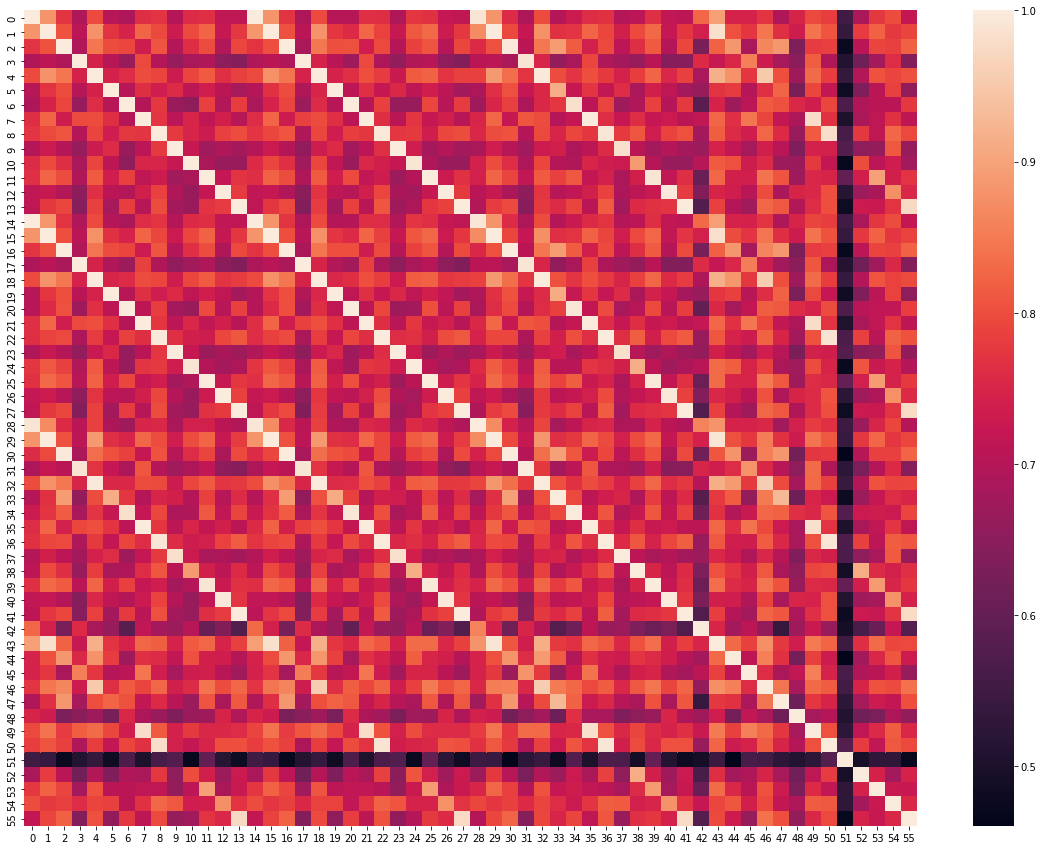 Here’s our plot of the cosine similarity of each pair of model’s behavior on the out-of-distribution MNIST task: