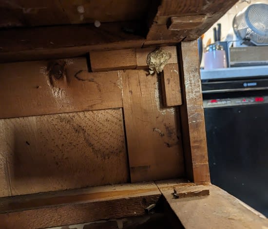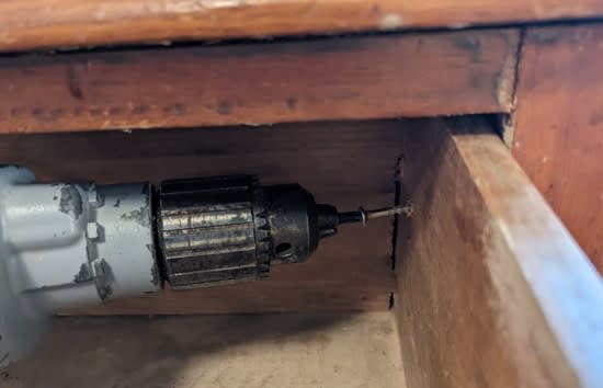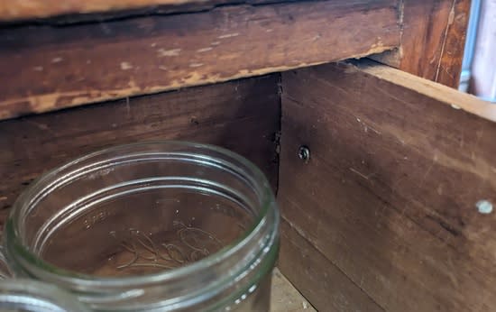 As an old dresser with wooden runners, however, there’s nothing to keep the drawers from being pulled all the way out, and falling with a crash. Which is a problem, since we have an inquisitive toddler. There are various approaches for making drawer stops, but to figure out what might be a good fit for ours I started by taking the drawer all the way out: