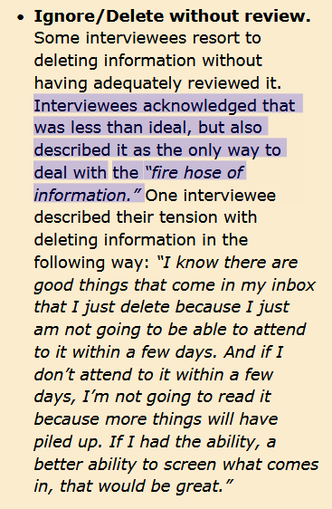 Research that asks policymakers and philanthropists about their reading habits tells a similar story. Funders responding to a survey of more than 700 foundation professionals sponsored by the William and Flora Hewlett Foundation reported being completely overwhelmed with information, to the point where some of them just delete emails announcing new reports and studies without even skimming them first to see if they’re relevant.