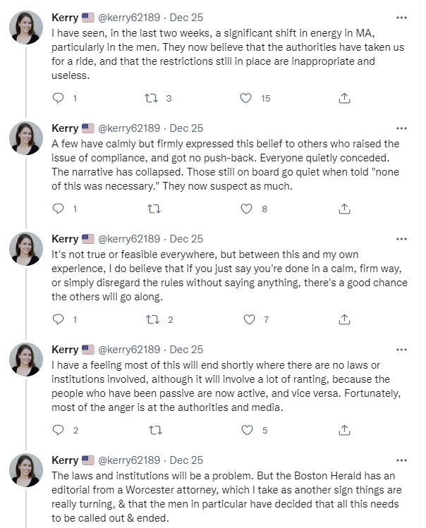 That doesn’t mean that the mandates we have are wise or reasonable or make any sense as prevention as opposed to punishment. If your mandates don’t start going into effect until January 15, and they ramp up in March, what’s the point? I don’t expect it to be ‘over’ by then but the peak would have already at least be close.