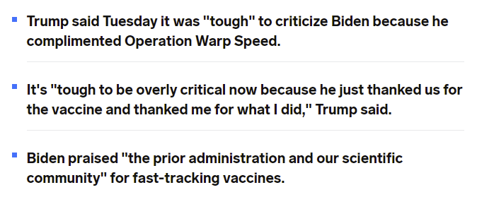 Trump is also on message regarding those vaccines, without insulting the people he’s addressing. It’s not working, exactly, but I’m sure it’s doing some amount of work, and if he’d wanted to Trump could have caused quite a bit of trouble. Getting and staying on message can’t be easy here, but it’s both smart and the right thing to do.