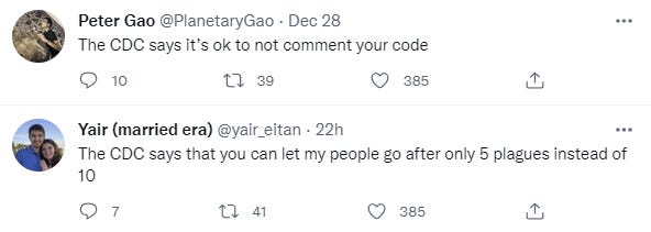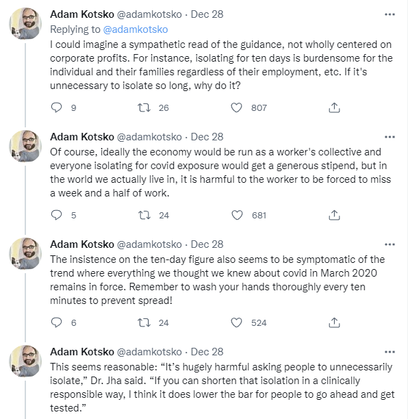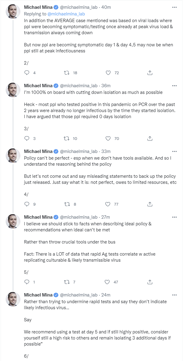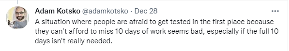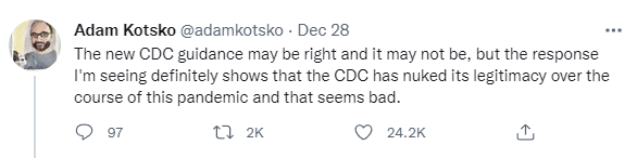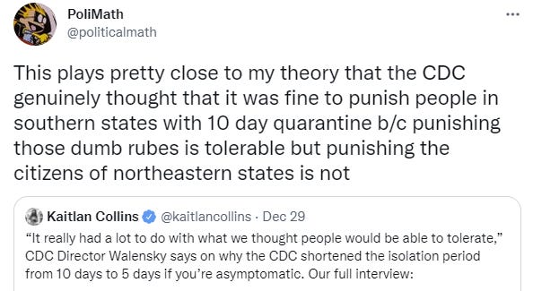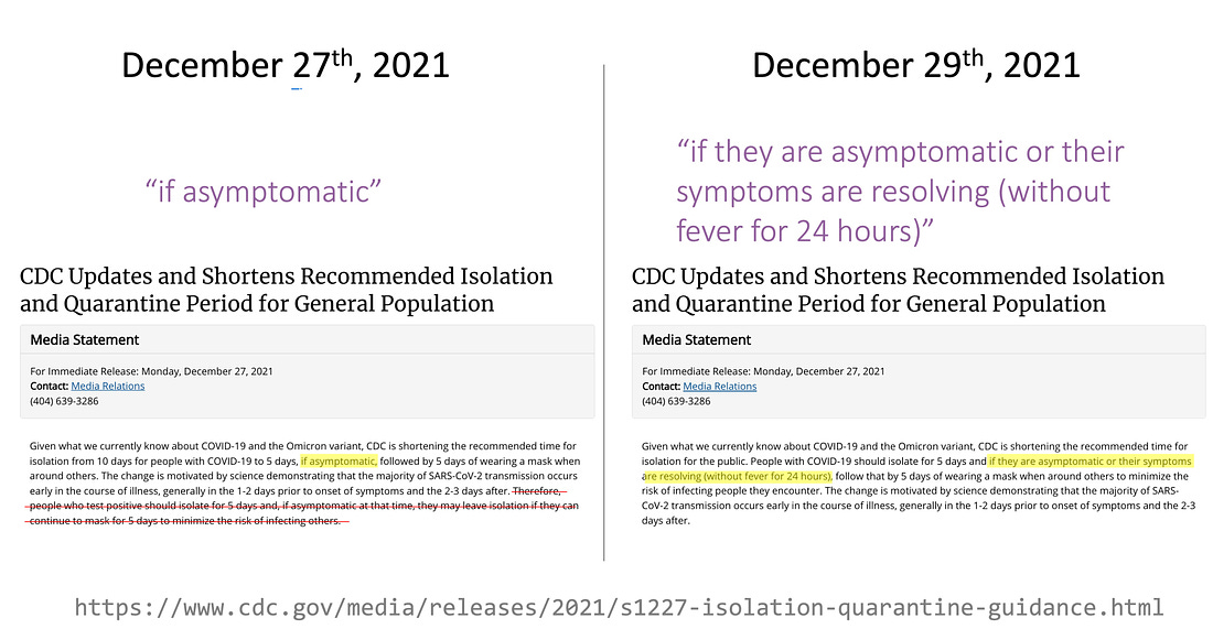 I wrote a post yesterday about the CDC’s revised guidelines on how long to isolate if you test positive for Covid-19. The story very much continues, so consider this a Part 2.