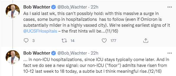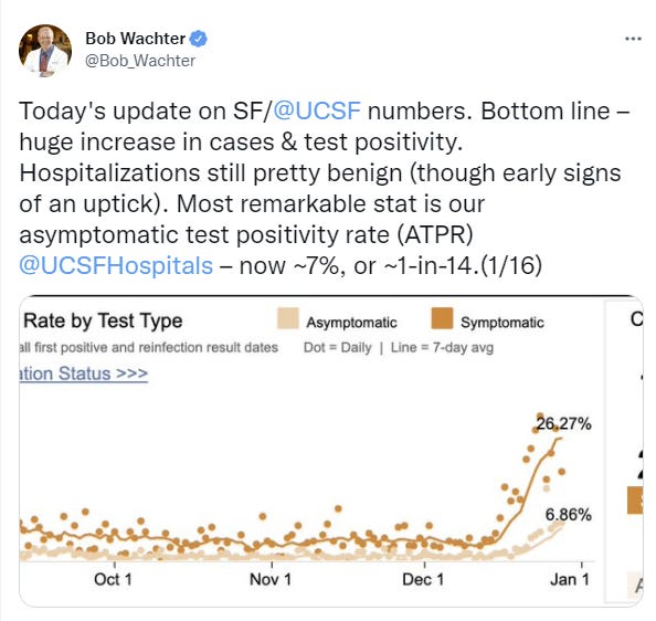 For five weeks, we’ve seen Omicron double and double again. That which can’t go on forever, won’t. There aren’t many doublings left. This is it.
