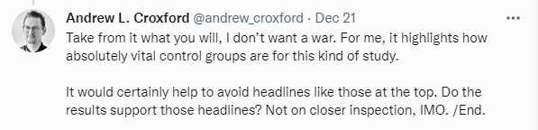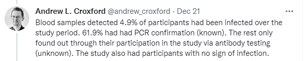 We could in theory give the benefit of the doubt that everyone with symptoms got a PCR test, but I’m still awfully suspicious of zero effect, especially when other claims sometimes involved not differentiating much based on severity of the infection.