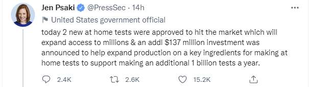 Even better news is that it seems we have approved an additional rapid test from Roche. And then another, from Siemens. Every little bit helps, even when it’s both too little and too late. Go ahead, take your victory lap, I’ll take what I can get.