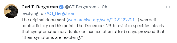I continue to be less sympathetic to the stealth edits that have major practical impacts, and a continued refusal (as far as I can see) to explain clearly what’s going on with the whole ‘symptoms are resolving’ clause. If the rule is ‘no fever’ then that’s a clear rule, why not say that?