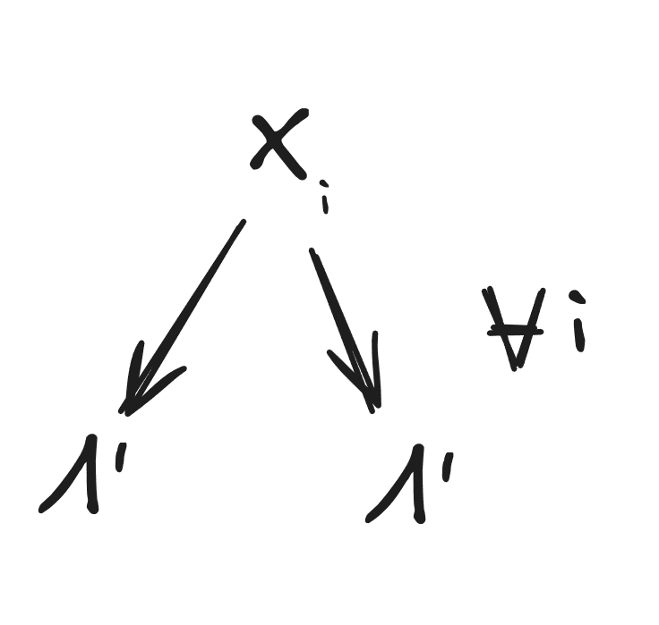 Well, both inductors see , which are all shot-of-vodka-instances. Suppose they both look for a natural latent over those instances, and both find one: for the customer, for the bartender. Then we know that the two have found approximately-isomorphic strings.