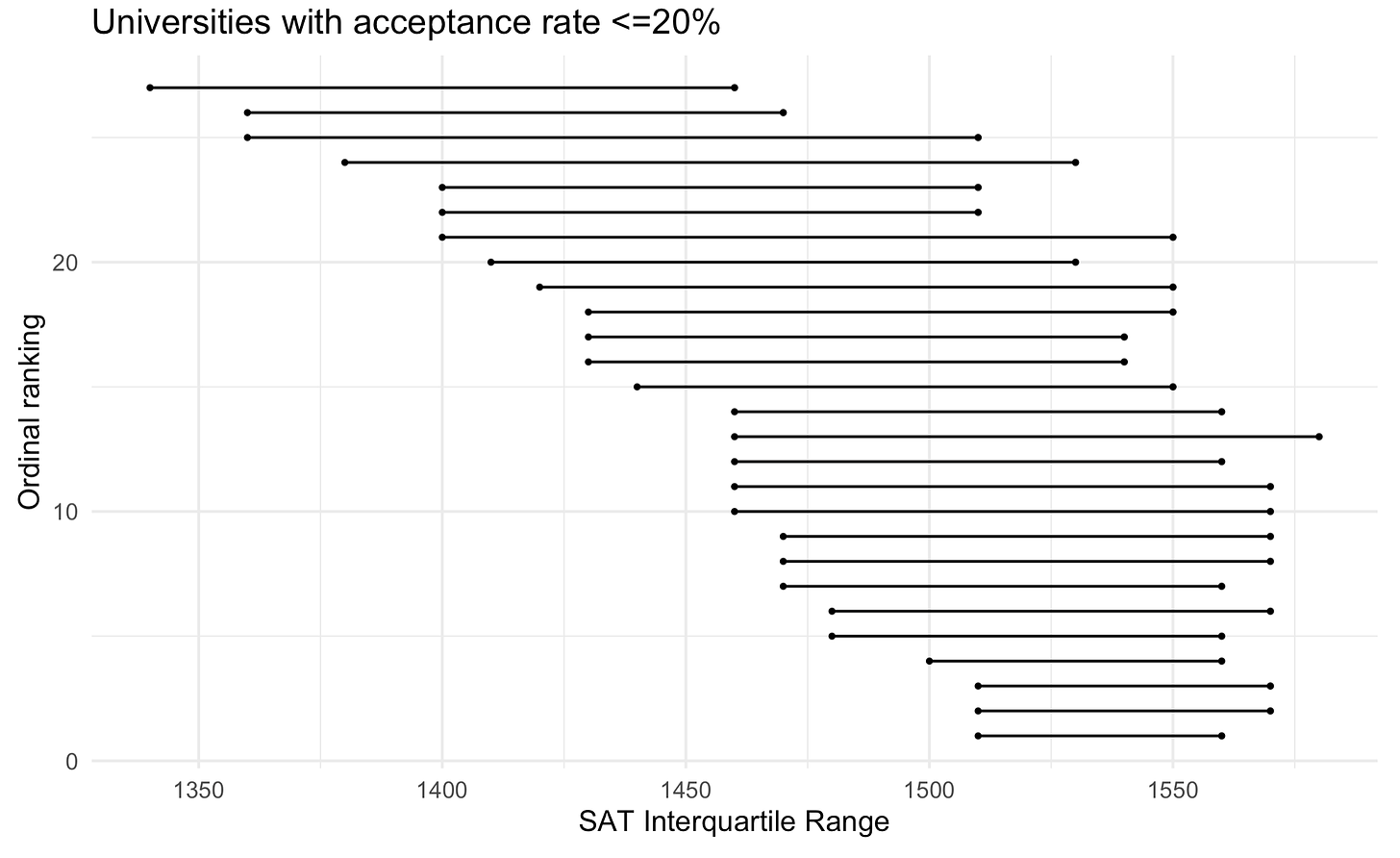 Even at the societal level, such a blemish on the meritocratic veneer of higher education itself isn’t an issue. What might be, however, are individuals’ (e.g., high school me), groups’ (e.g., performance-focused organization) or society’s failure to grasp the situation. All this is to say that I’m trying to get some facts on the table so they can be recognized—not (necessarily) so they can be “corrected.”