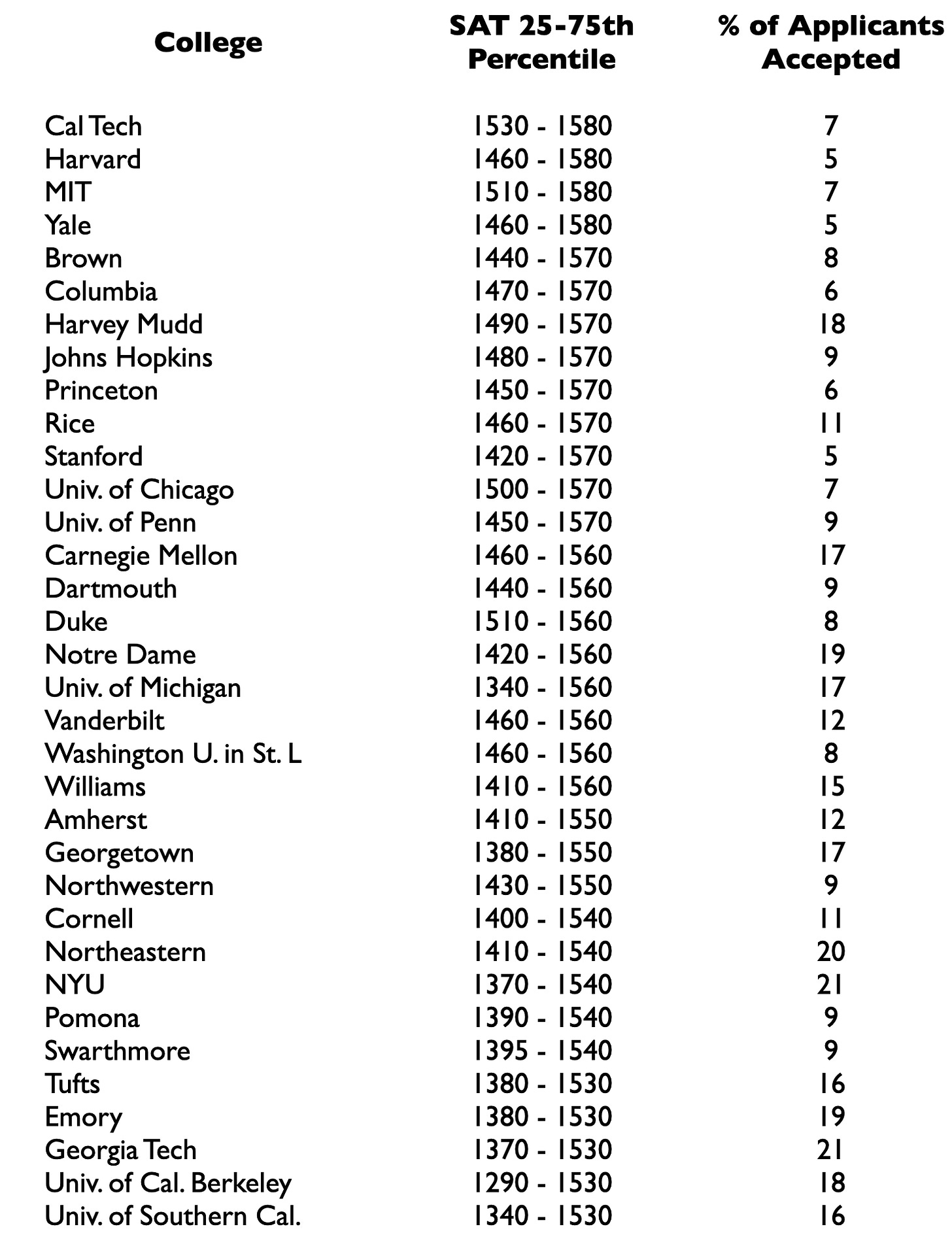Great points. I think one of those charts, though, is incorrect: the one right above the “What’s going on?” header. The numbers don’t look right: Penn State has the almost identical SAT scores as Harvard? The scores listed on Penn State’s website are dramatically different: 1270-1450 for their top campus, not 1450-1560. Other scores listed look right. My guess for the mistake is they swapped it with University of Pennsylvania, for which I found 1440-1560 and 1500 average scores in one source but isn’t on the list. Regardless, I weep for today’s students on this academic treadmill.