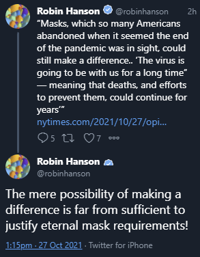 Meanwhile, in Permanent Midnight watch, the New York Times has an advocate for permanent masking who strongly disagrees with Robin here.