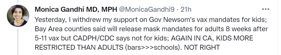I might be preaching to the choir here; I’m just sick and tired of the complete lack of basic risk calculations being made. No, kids should not mask in schools indefinitely, and in fact having more oppressive restrictions on kids than adults is absolutely ridiculous. I really hope we can finally get legislators to come to their senses about this, because right now this situation is patently ridiculous.