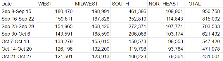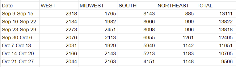 Slightly disappointing case counts, very slightly good news on deaths. Trends continue and I see no reason for that to change in the next few weeks. Children getting vaccinated soon should help somewhat as well, although that will take a while.