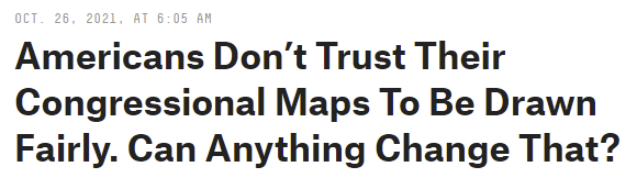 Americans not trusting the maps to be drawn fairly is good. It is a feature. Because they’re not fair, at all, they’re completely partisan. It would be good if they were not partisan, but the goal there isn’t to restore faith that the process is fair,, it’s to have a fair process. Everything is like this.