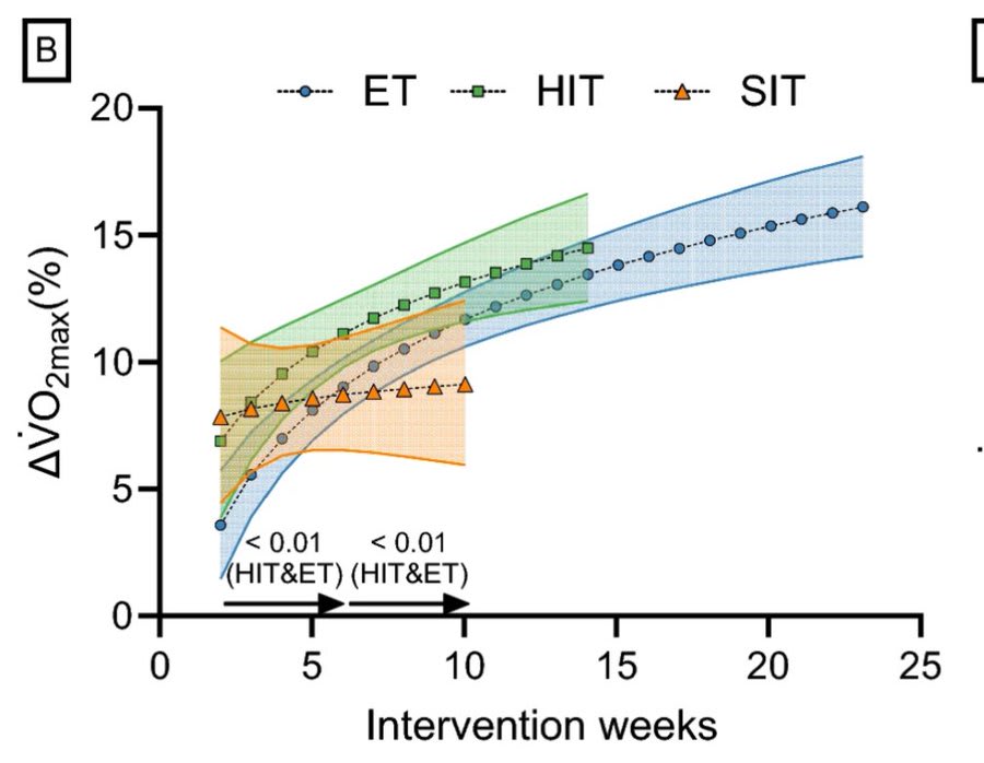 For the second concern: is HIIT really better than low-intensity training (LIT)[26] for improving VO2max? Probably yes, but it’s unclear.