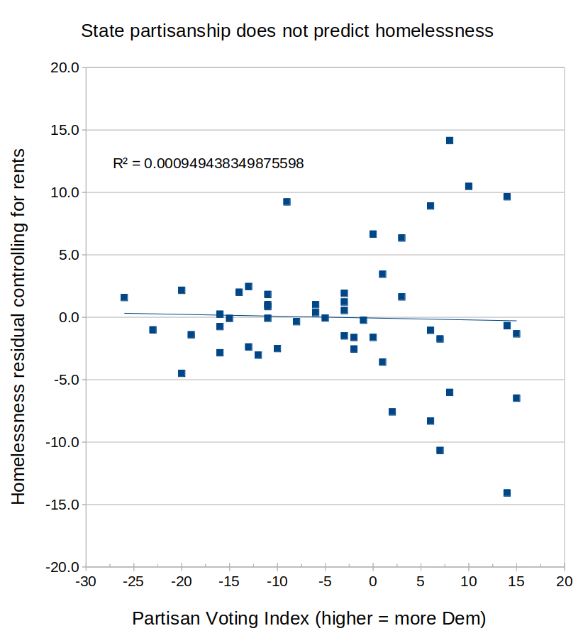 “I also found that, controlling for rents, the partisanship of a state did not predict homelessness”″