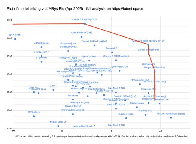 With Gemini 2.5 Pro pricing, we confirm that Gemini occupies the complete Pareto Frontier down to 1220 Elo on Arena.