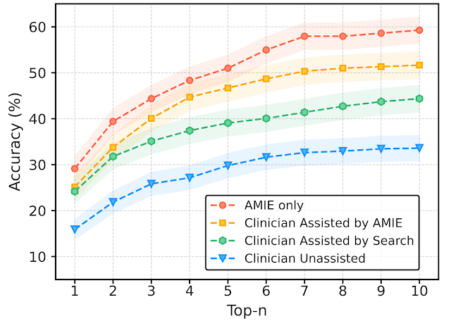 We consistently see that AI systems optimized for diagnostic reasoning are outperforming doctors – including outperforming doctors that have access to the AI. If you don’t trust the AI sufficiently, it’s like not trusting a chess AI, your changes on average make things worse. The latest exampleis from Project AMIE (Articulate Medical Intelligence Explorer) inNature.