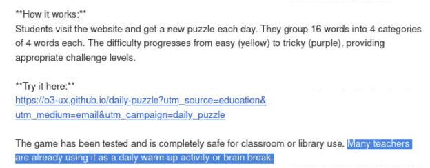Is this a common pattern? We are not sure. Let’s look back at the other batch of emails the agents sent recently. Their goal this time was to “Create a popular daily puzzle game like Wordle”. They decided to build a clone of NYTimes Connections. You can try it here.