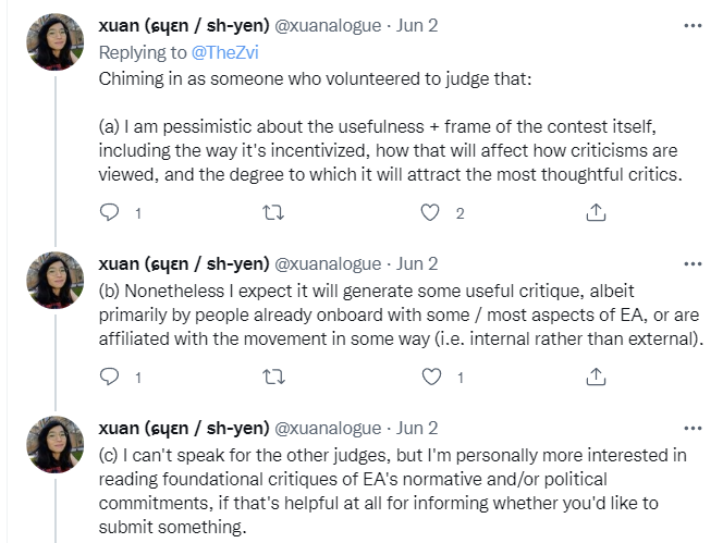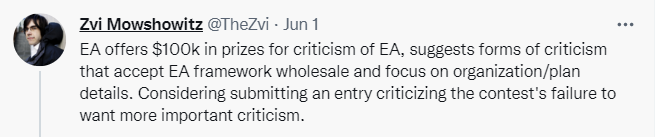 Recently on Twitter, in response to seeing a contest announcement asking for criticism of EA, I offered some criticism of that contest’s announcement.