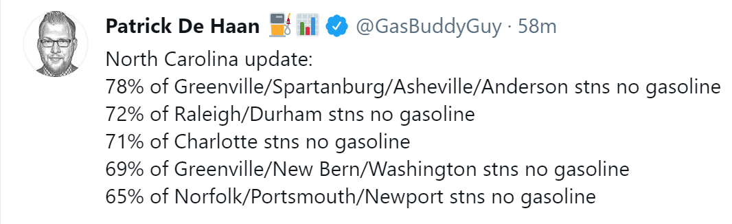 Not directly Covid, but relevant given we want to understand how the media chooses to cover things. You see, there’s a gasoline problem, in the sense that if you go to the gas station to try and purchase gasoline, chances are high they won’t have any and that’s going to be a problem. You would think this would be a really big story, and yet Robin’s experience matches my own…