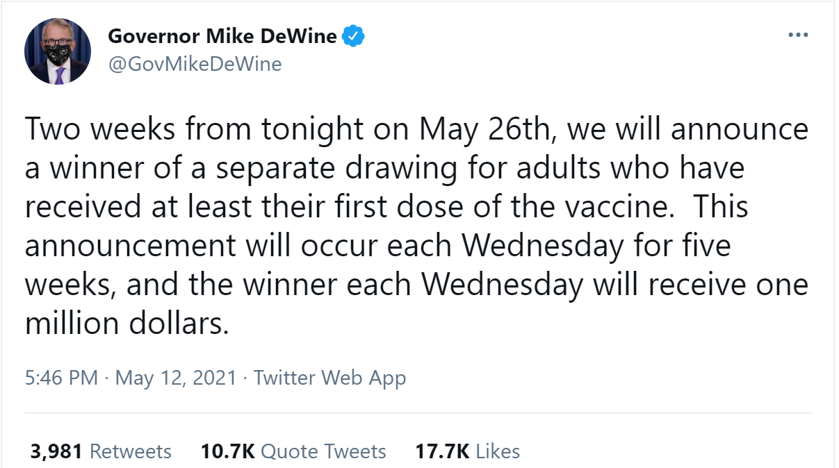 Vitalik gives epic crypto donations, including 1,000 ETH to MIRI, another 1,000 ETH (plus his ELON) to the Methuselah Foundation, more than 13k ETH to GiveWell, and one billion dollars (yes, billion with a B) in SHIBA at its pre-donation market cap to the Indian Covid Relief Fund. That’s 10% of the entire SHIBA blockchain. Looking at the replies to the relief fund’s announcement of the donation and also the current graph does not exactly inspire confidence that a billion dollars of fiat are going to result from this, and it does not bode well for other holders of this second-rate version of a meme coin whose very thesis is war upon the very concept of sensemaking and logic, and I am totally, totally fine with every last bit of all of that.