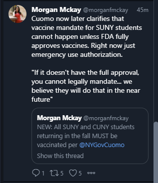 We have now approved the Pfizer vaccine for children 12-15. Surveys say that there will be a lot of reluctance to vaccinate children, and public service approaches like ‘first thing talk to your child, they are sure to have an opinion’ do not seem likely to be helpful in solving this problem. As with vaccination in general, there will be a core of people desperate to get the vaccine for their children one day sooner to feel safe and let their lives move closer to normal, then varying degrees of reluctance and skepticism. A lot of people are using the ‘wait and see how it goes’ option in surveys, despite this attitude making very little physical sense. We are not going to learn anything here.
