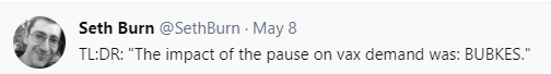 Or, alternatively, you could look at all the specific people I know about who expressed uncertainty surrounding the pause, or all the work I’ve been forced to do about the pause, and the professional time I’ve spent advising on how to deal with questions about the pause and how it is a substantial fraction of any draft of a vaccine FAQ at this point.