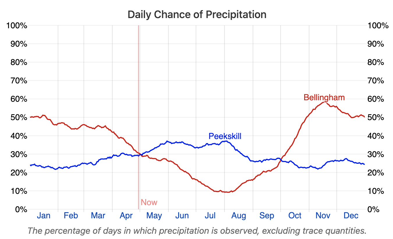 I think Peekskill has ticks and mosquitoes (while Bellingham has neither). If I’m wrong, and the Peekskill area has very mild mosquito seasons, that would be an important positive update for me.