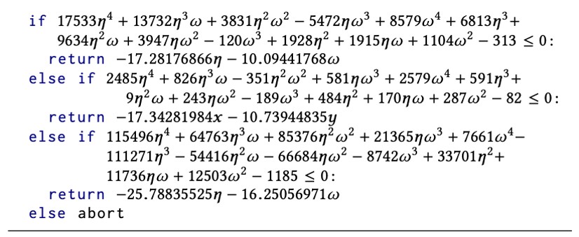 Just as a reminder that learning programs does not automatically confer interpretability, I present to you the symbolic policy learned by their method for the inverted pendulum: