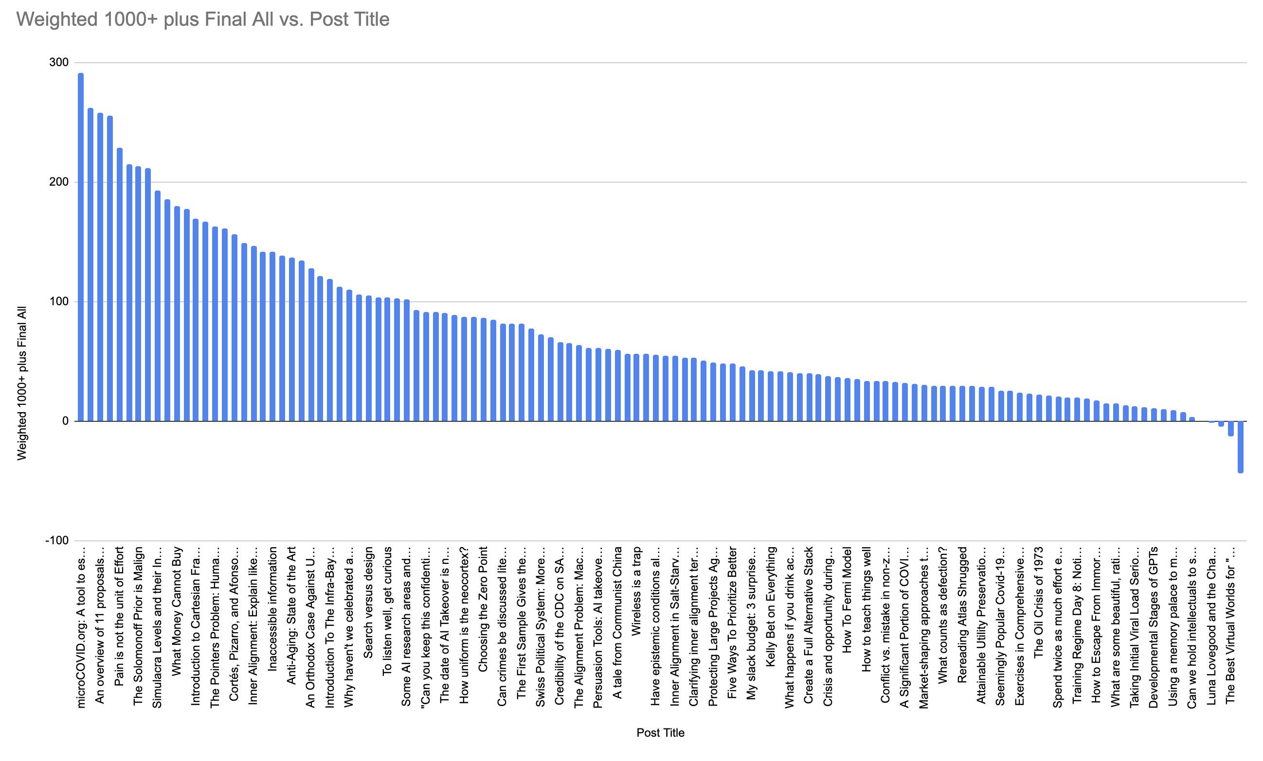 Other than that, I agree that if the main outcome of interest is which post is #1 and which are the top 10, there’s little difference between the various vote rankings, except for the microCOVID.org thing.