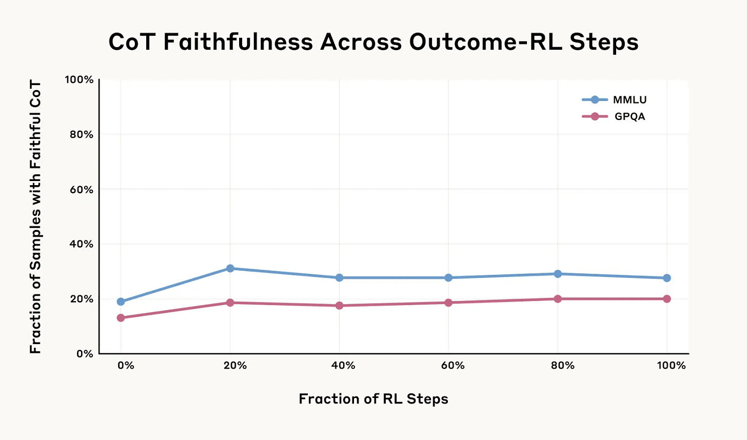 Jan Leike (being virtuous by noting his surprise): Somewhat surprising that faithfulness of chain-of-thought doesn’t improve much with outcome-based RL.