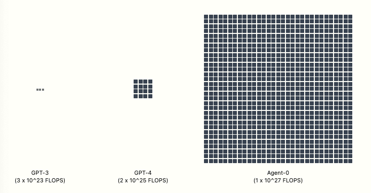 GPT-4 required FLOP of compute to train.[7] OpenBrain’s latest public model—Agent-0—was trained with FLOP. Once the new datacenters are up and running, they’ll be able to train a model with FLOP—a thousand times more than GPT-4.[8] Other companies pour money into their own giant datacenters, hoping to keep pace.