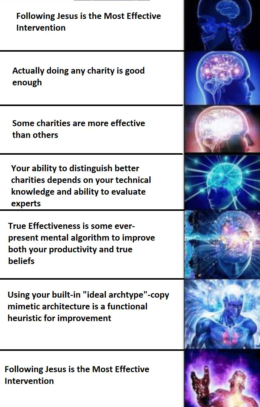 You can also look a little deeper and see that it’s not just the frame of “beliefs with probabilities” that can get you in trouble. The frame of the “individual” itself can become problematic when over-used. To be fair, this is not exclusive to rationality, but rather a common thread that cuts across nearly all Kegan 4 philosophies. EA, libertarianism, following Jordan Peterson also have an “individualist” bent to them. And while saving kids from malaria, not relying on handouts and cleaning your room are useful things to do, just like statistics is also a useful thing to know, the “end game” isn’t really there. For example, over-emphasizing individual’s capacity for action pushes leaders away from defining clear roles or more directly assigning tasks.