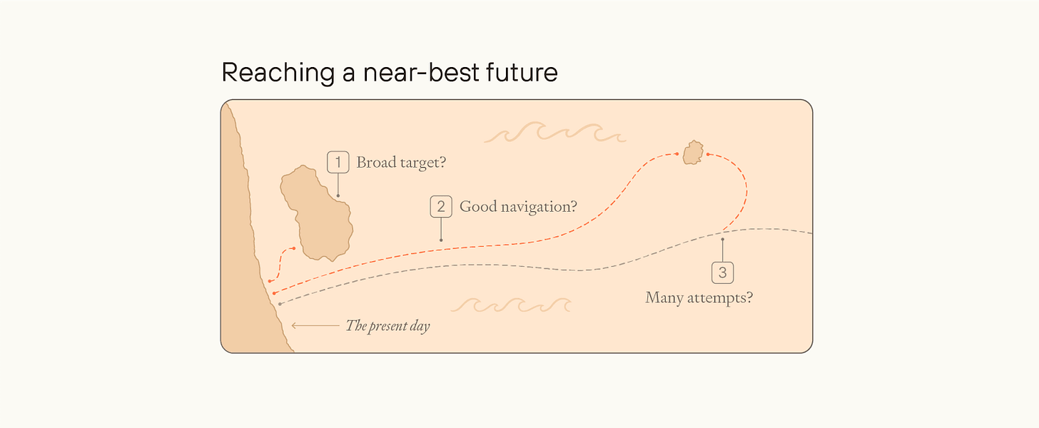 Similarly, we could be on track for a near-best future for a few different reasons.