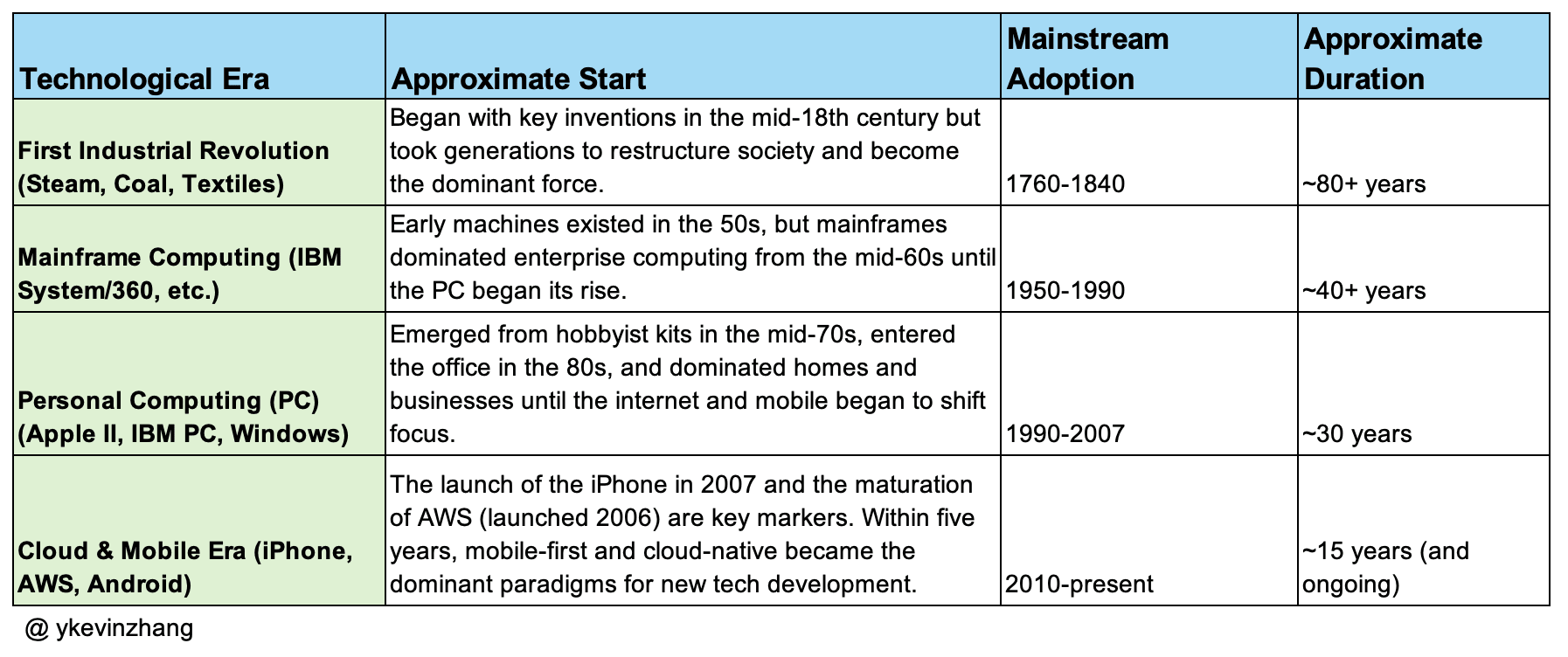 We might already be ~1/3 of the way through the AI era if ChatGPT is considered humanity’s “mainstream AI moment”, and the cycle lasts ~10 years (AlexNet or the Transformer paper arguably can also be considered the start of the AI era).
