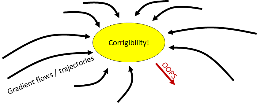 With each AND, the claim gets stronger and more unlikely, such that by the millionth proposition, it starts to feel awfully unlikely that corrigibility is really a broad basin of attraction after all! (Unless this intuitive argument is misleading, of course.)